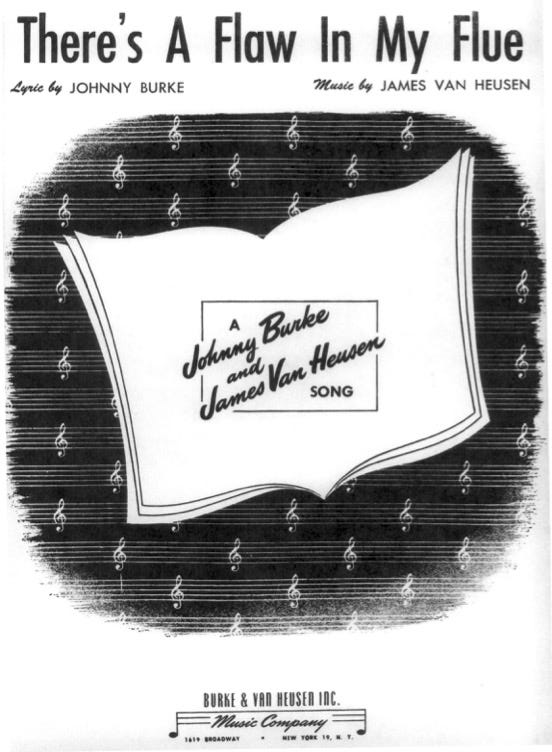 “There’s a Flaw in My Flue” draws on tropes that go way back all over the history of popular song lyrics; late at night, the protagonist is reminiscing over youth and lost love, essentially the same idea as Van Heusen’s classic “Deep in a Dream” and even “Stardust.” This hero is reminiscing in front of his fireplace - shades of “Smoke Dreams” (from After the Thin Man) by Arthur Freed and Nacio Herb Brown, and “Smoke Rings,” the theme song of the Casa Loma Orchestra, music by arranger Gene Gifford, lyrics by the brilliant Ned Washington. Famously, the best known song to use smoke as a visual element in a love song is “Smoke Gets In Your Eyes,” by Jerome Kern and Otto Harbach, from Roberta (1933), which is directly referenced in “Flaw / Flue.” On the March 23, 1949 Philco show, Crosby introduces the song as being “written by a chimney sweep who was thrown out of work when his employer switched to natural gas.”